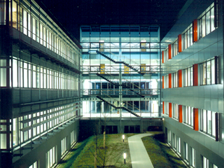 Die Umsetzung der direkten Zuordnung der Labore der wissenschaftlichen Mitarbeiter zu den Büros spiegelt sich in der Ausgestaltung der Fassade wieder – die glatten, nach Norden orientierten Außenflächen repräsentieren die Labore, während die Büros mit ihrer zweischichtigen Fassade nach Süden ausgerichtet sind. Sonderlabore für empfindliche Messungen im Untergeschoss wurden von der Konstruktion abgehängt, um Messbeeinträchtigungen durch Schwingungen des Baukörpers zu vermeiden. Die Medienversorgung der Labore erfolgt über regelmäßige Schächte.