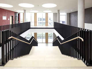 Der Neubau der Gesamtschule Rodenkirchen ist eine komplexe meandrierende Großform, welche die unterschiedlichsten Funktionsbereiche innerhalb dieser Gebäudestruktur vereint. Die Typologie des Meanders ermöglicht bei gleichzeitig kurzen Wegen eine Reihe unterschiedlicher spannender Raumfolgen. Neben eigentlichen Unterrichtsräumen beherbergt das Gebäudekomplex auch eine Pausenhalle, das Pädagogische Zentrum, die Mensa, eine Schulbibliothek, eine Sporthalle sowie eine große Freitreppe im Hof.